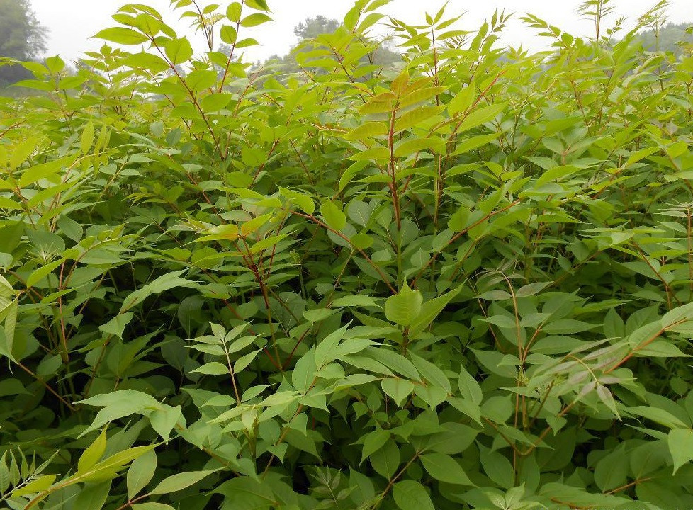 色,无毛。叶轴及叶柄粗壮,通常密被褐锈色或棕色柔毛,有小叶7-15片,小叶纸质,长圆状披针形或卵状椭圆形,长8-15厘米,宽3.5-6厘来,顶部